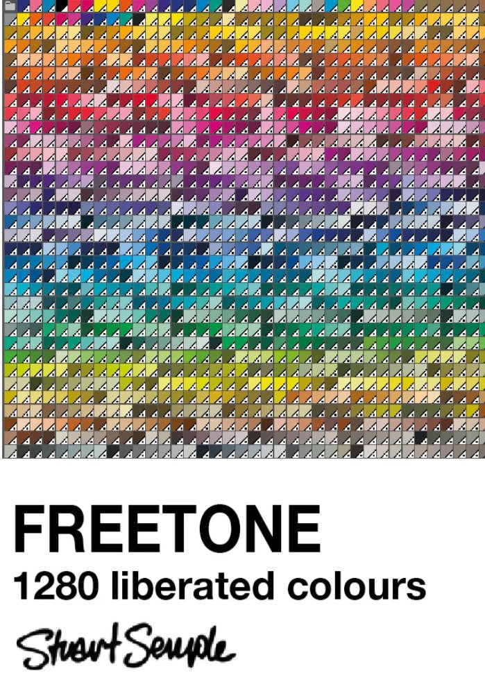 FREETONE WebLinkFREETONE by Stuart Semple contains 1280 colours including digital versions of his Pinkest Pink, Incredibly Kelinish Blue, Black 3.0 and TIFF